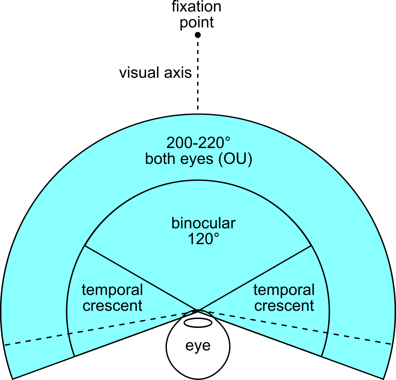 When we try to visualize very wide fields of view on screens and pages, we lean on lens distortions—like a fish-eye lens, to squeeze the wider vision into a small space. And for a 360-degree view, we might map all that vision onto a circular image, with extremely distorted edges of the circle to achieve a complete panoramic view.