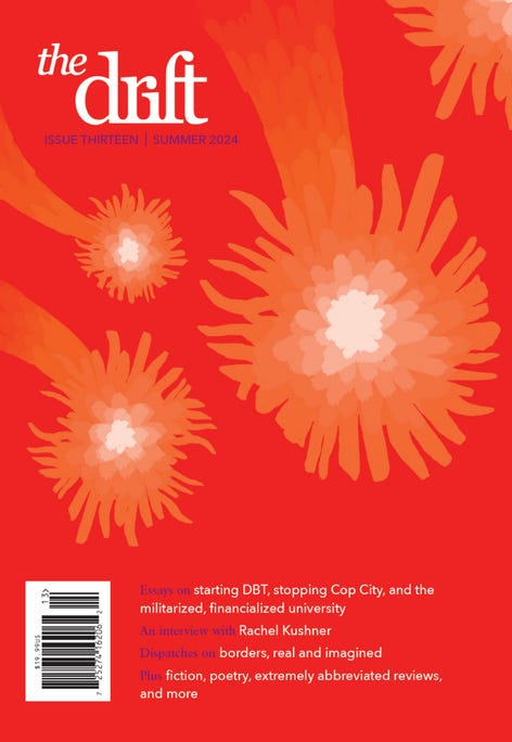 Something I wrote is appearing in Issue 13 of The Drift magazine! And I’m getting paid for it!!!1 Which I will turn around and spend on buying a copy of the magazine, ha.