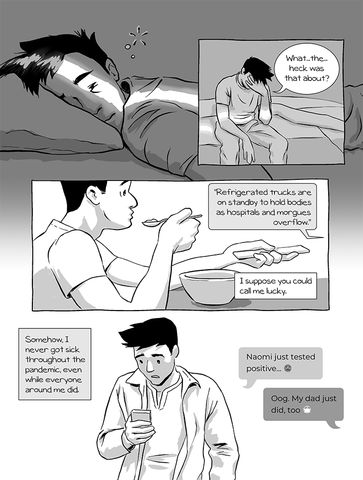 This drawing is amazing! This story made me reflect on the pandemic days all over again - Awsome job, William!