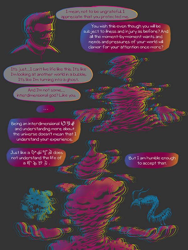 It’s been a fantastic experience going through all the steps in the process of creating a graphic novel/short story, starting with writing the script and moving through character design, drafting page layouts, and finally doing all the illustrating. I learned a lot and have ideas for my next couple graphic stories that I want to tell. But before I get to those, I’ve got some things still to do with Phased and also want to take a break from graphic storytelling to work on my painting.