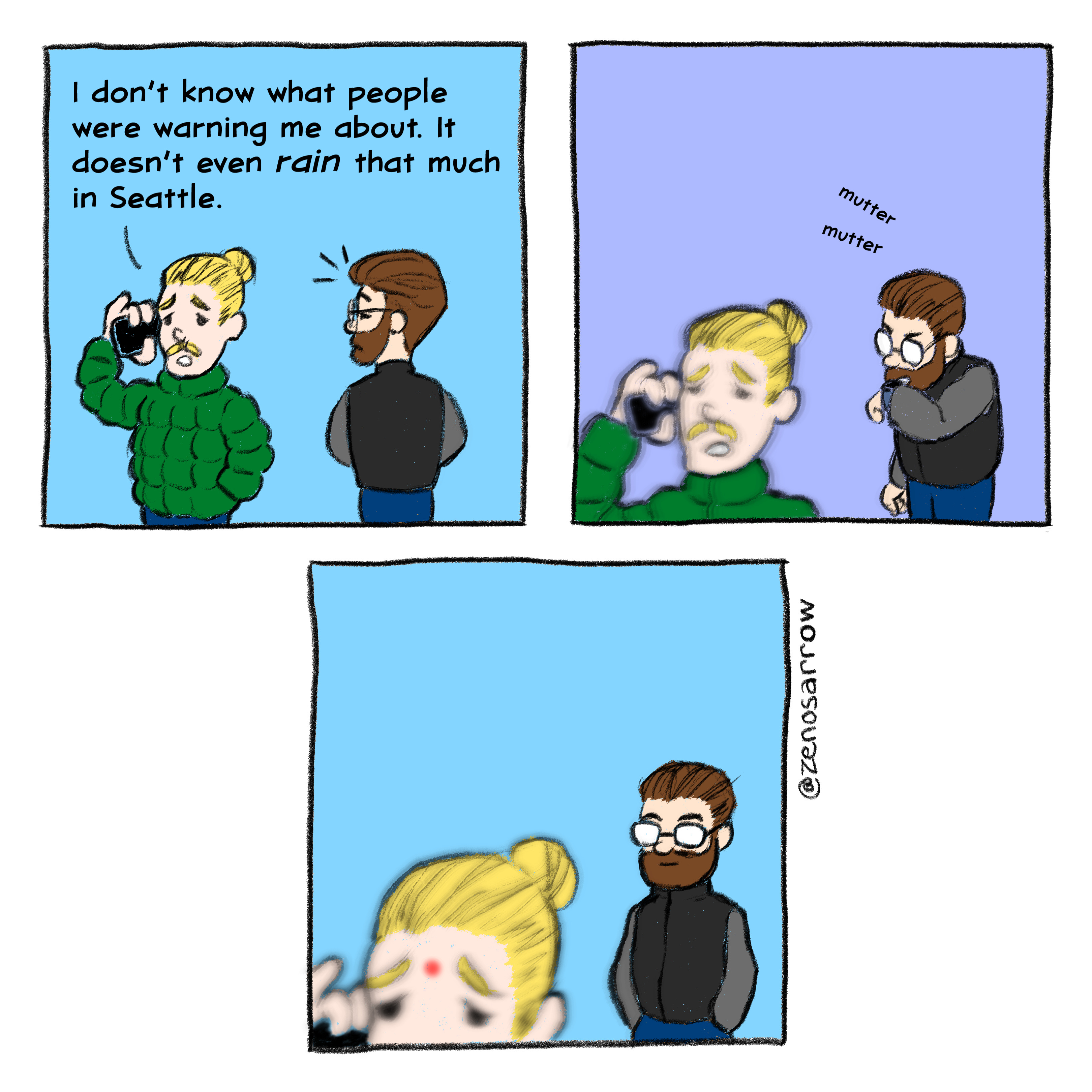 ComicsSeattle Rain William of ZenoNov 28, 2023ShareWe here in Seattle use what I call “the Iceland strategy” to ward off potential in-migration.Thanks for reading Zeno's Arrow! Subscribe for free to receive new posts and support my work.SubscribePreviousNext