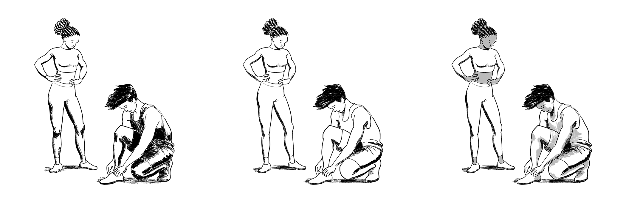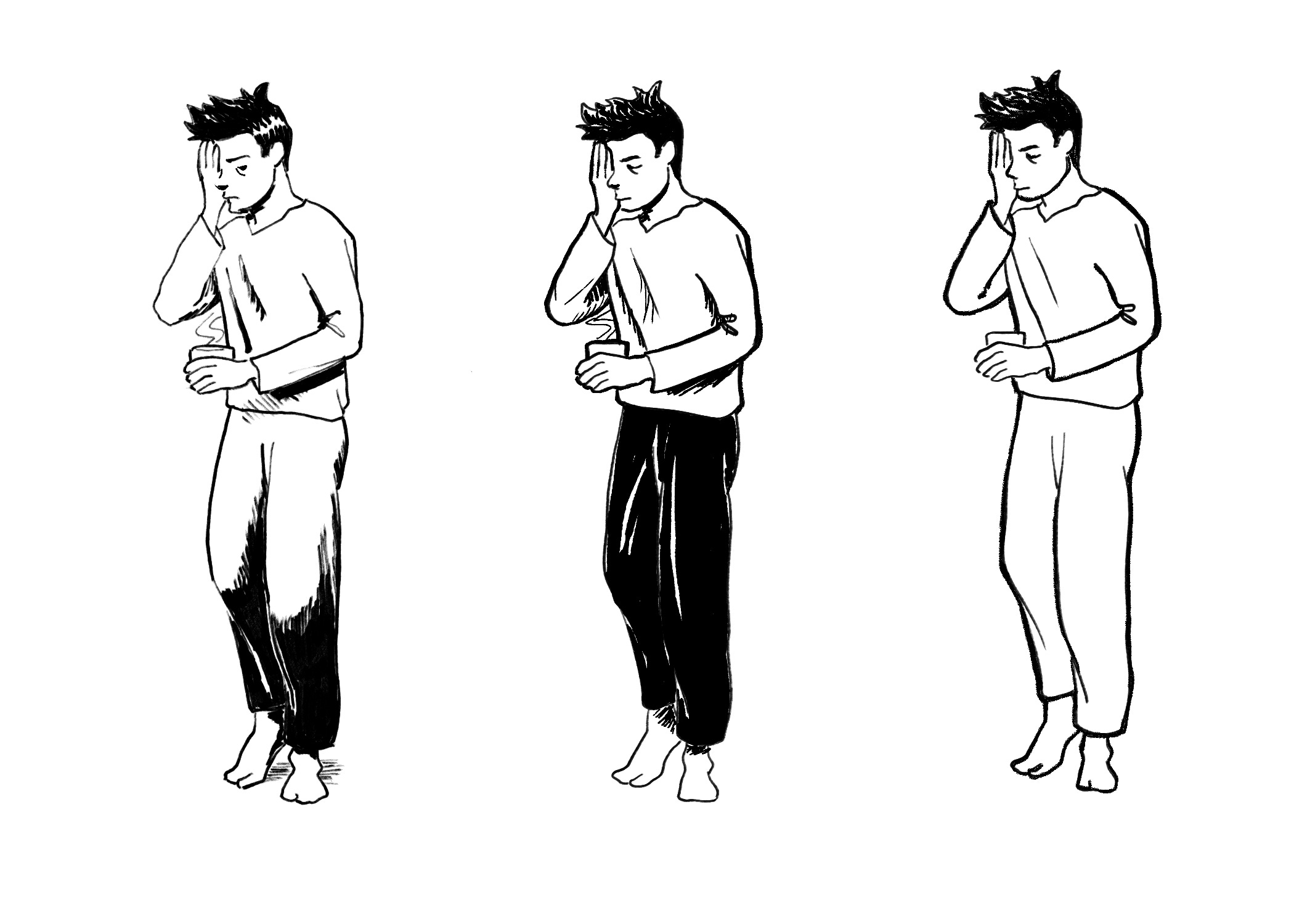 In the images below you can see me just inking the same characters/poses in different ways.